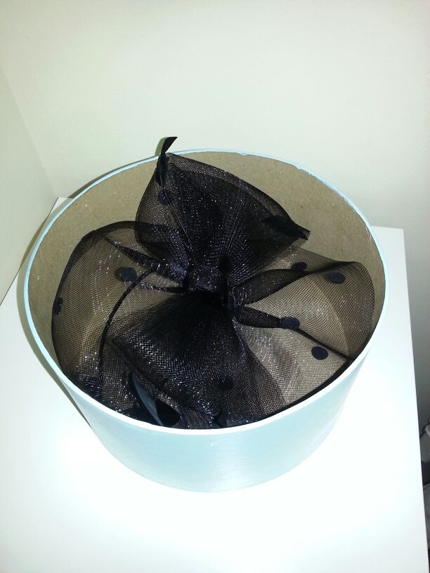 Hi Everyone! Happy Monday! Hope your week is off to a good start π I want to share my latest and greatest customizing DIY project with you! Recently, I posted about the multiple uses of hat boxes in my Scares, Gloves and So Much More! post (check out the link in case you missed it). During my holiday travels, my cousin purchased an adorable headband in London, much like the ones everyone wore to Prince Williams Royal Wedding. I suggested that she store it in a hat box for safekeeping and I decided to customize one for her to match the organizing accessories she already has.