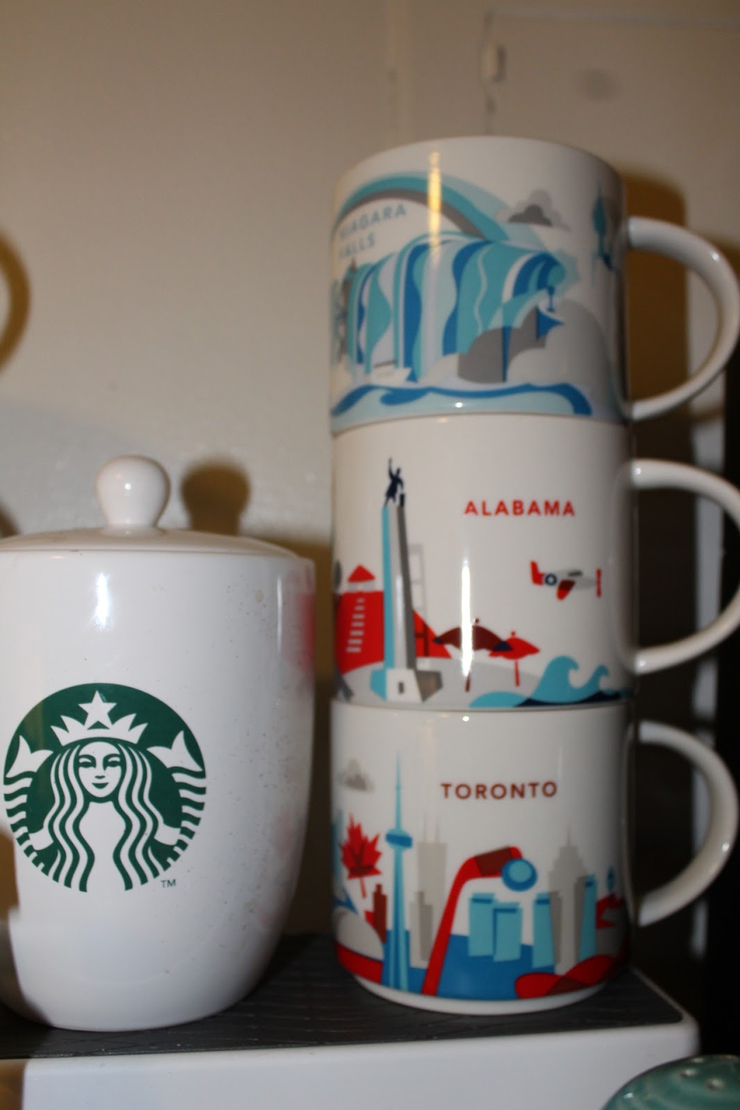3. Mugs – I collect the Starbucks mugs from around the world, whenever I travel. So I have amassed a little collection. I display about 4 at a time since its only 2 of us. You can use whatever mugs you like, saw some cute striped ones at Homegoods or this set from Bed, Bath and Beyond.