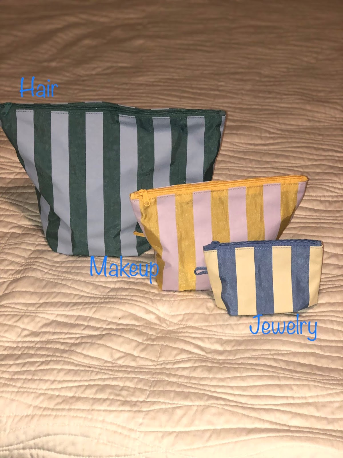 This is the Go Pouch Set in pastel stripe. Great for packing toiletries for a weekend away.