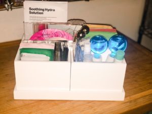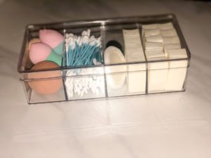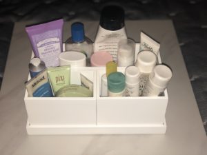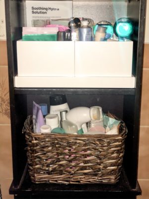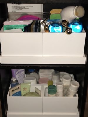 - Next, think of what makes the most sense for the items you are organizing. Since a lot of the facial products I was organizing are in flat envelopes/pouches, I knew a compartment organizer would do the trick. If you have bulkier items like jars or bottles, look for an open storage solution.