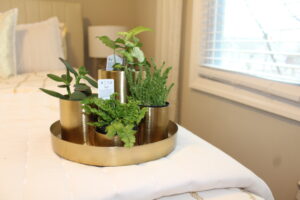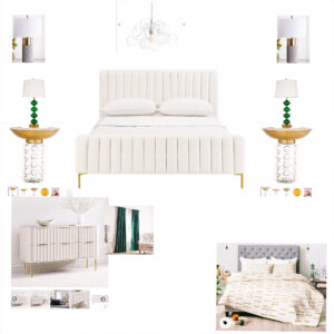 I just love this bed, its stylish yet timeless to me. We chose a platform bed because a boxspring would not get up the stairs. Décor hack – I opted for neutral bedding with a gold print and texture. When picking neutral palettes, opt for different textures to add dimension and interest to your space, you won’t regret it!